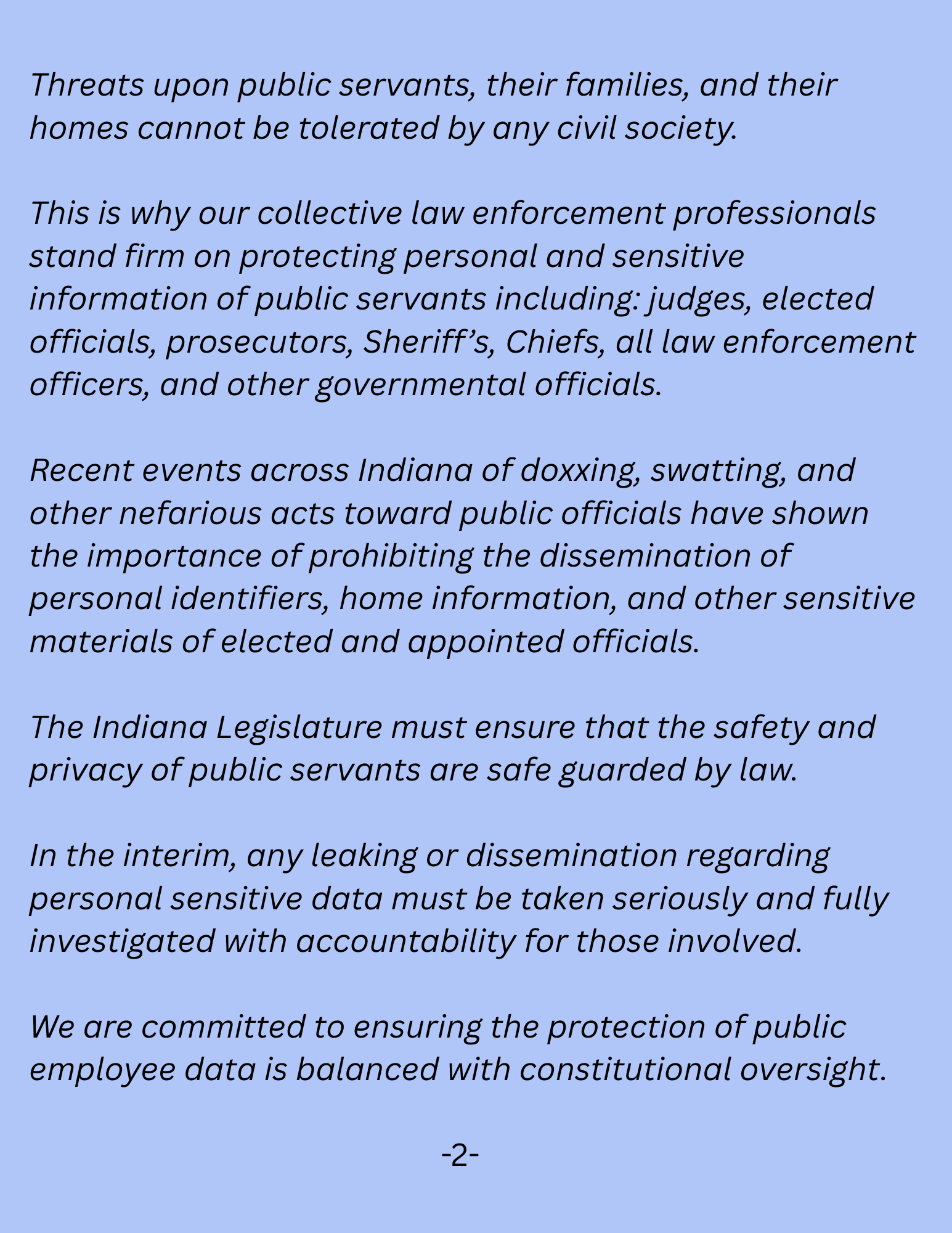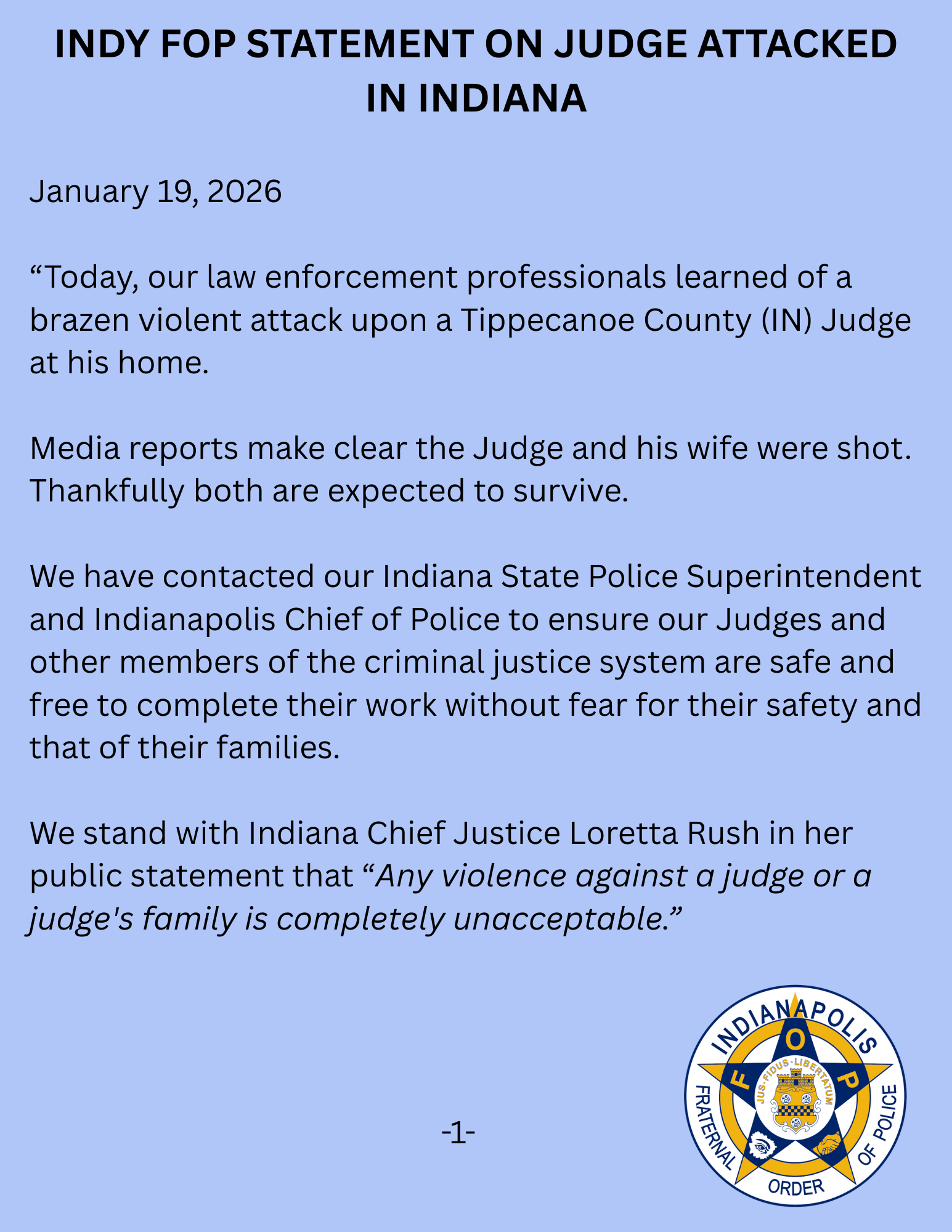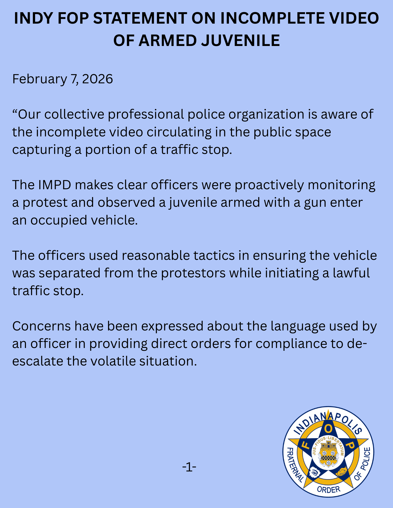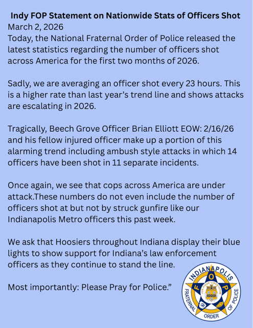 ©2020 Indianapolis Fraternal Order of Police, Lodge #86 All Rights Reserved. This video, written message, image, or other material is protected under the laws of the United States and other countries. Unauthorized duplication, distribution, or exhibition without expressed written permission may result in civil liability and criminal prosecution.