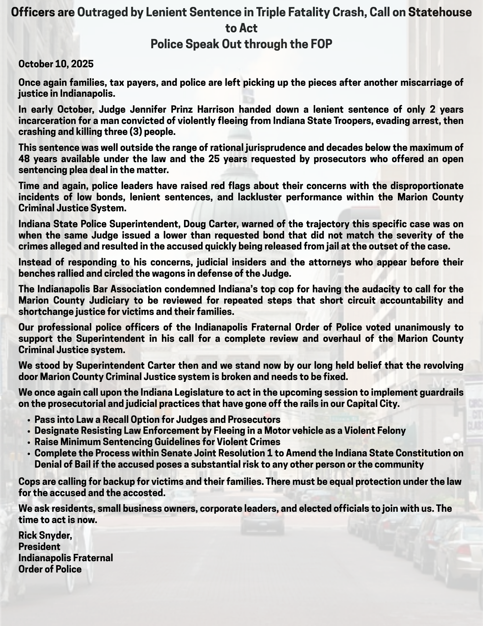Indy FOP Points to what’s been going on in Indy as Homicides and Juvenile Violence exploded.