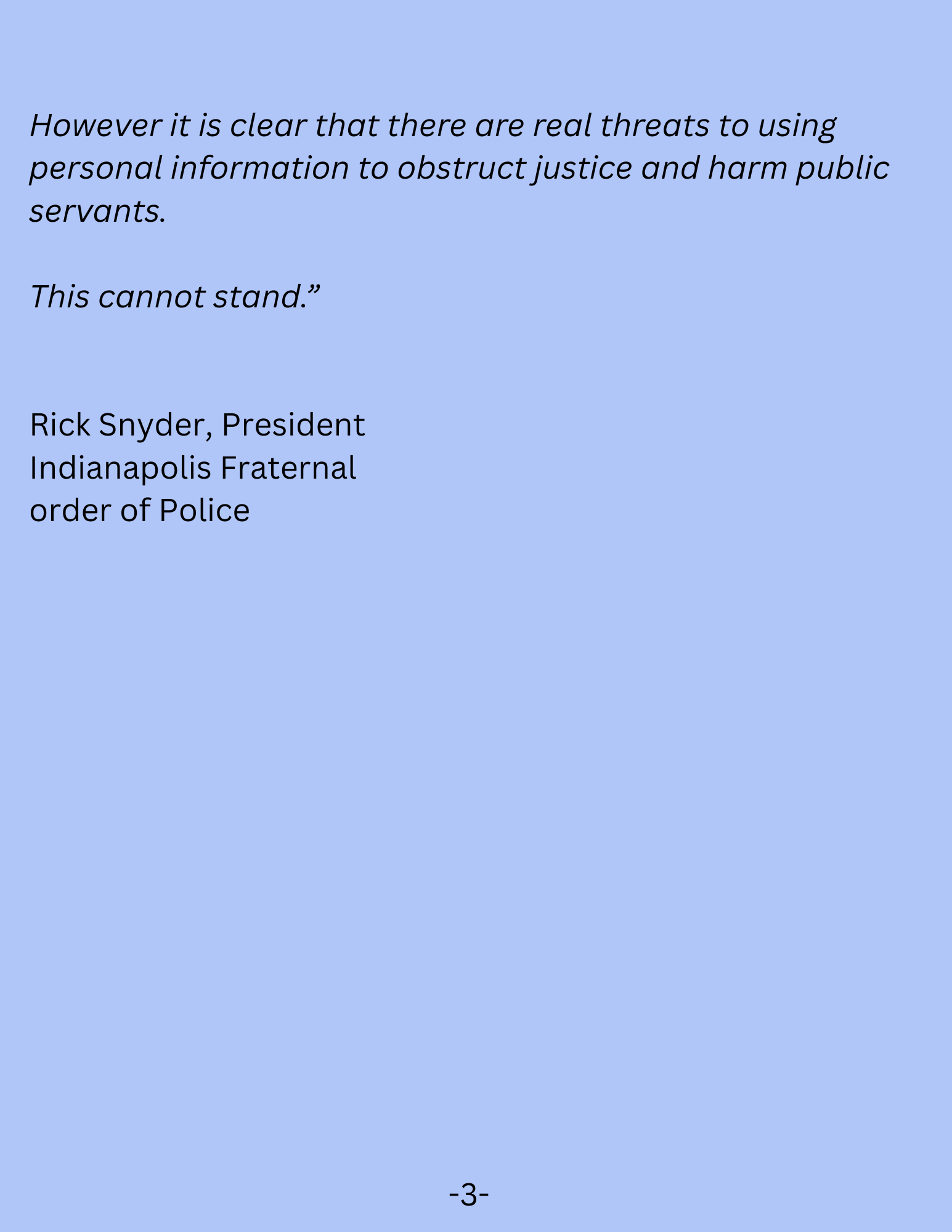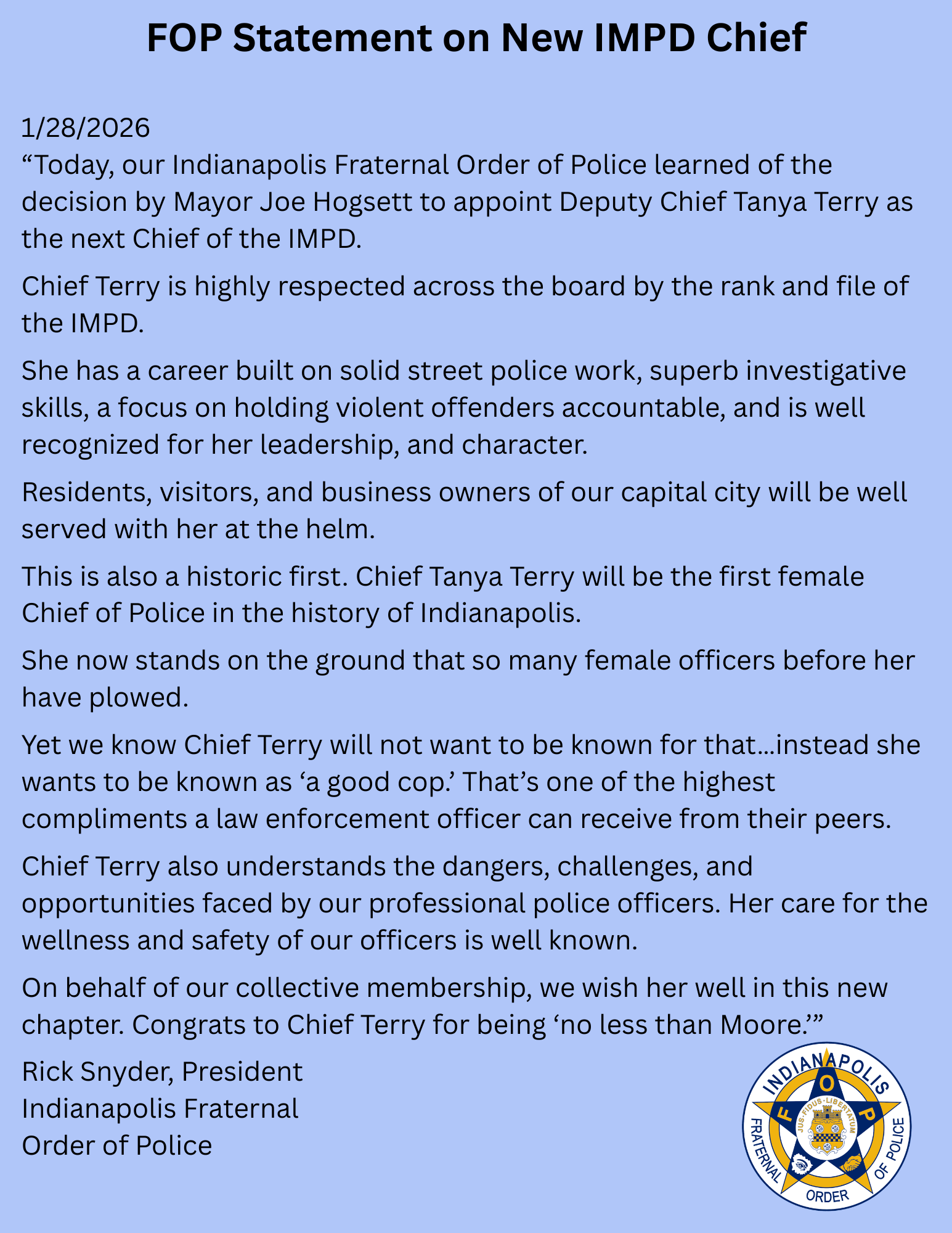 ©2020 Indianapolis Fraternal Order of Police, Lodge #86 All Rights Reserved. This video, written message, image, or other material is protected under the laws of the United States and other countries. Unauthorized duplication, distribution, or exhibition without expressed written permission may result in civil liability and criminal prosecution.