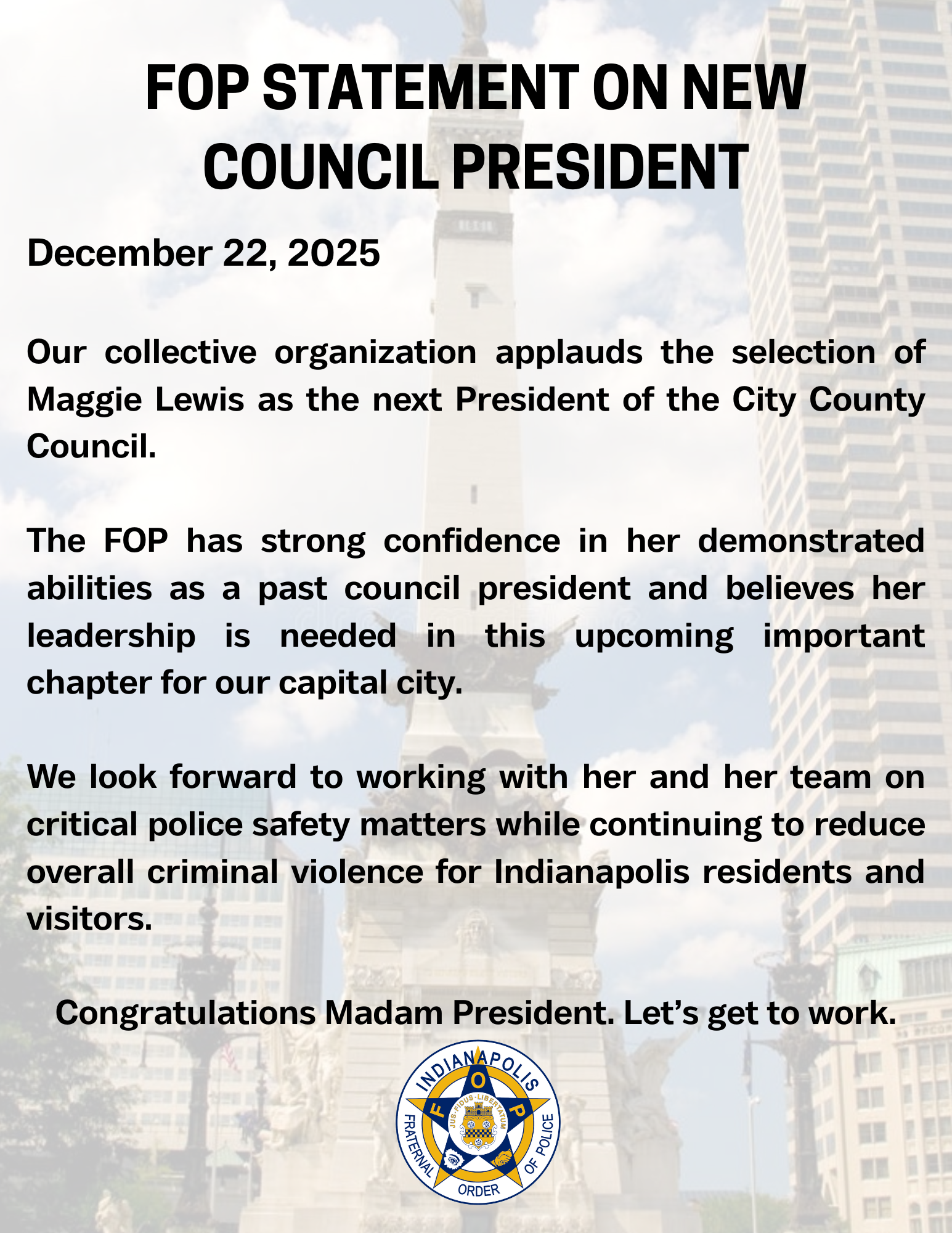 ©2020 Indianapolis Fraternal Order of Police, Lodge #86 All Rights Reserved. This video, written message, image, or other material is protected under the laws of the United States and other countries. Unauthorized duplication, distribution, or exhibition without expressed written permission may result in civil liability and criminal prosecution.
